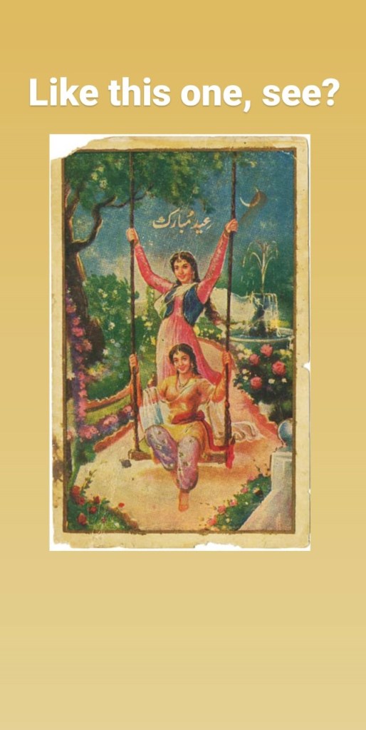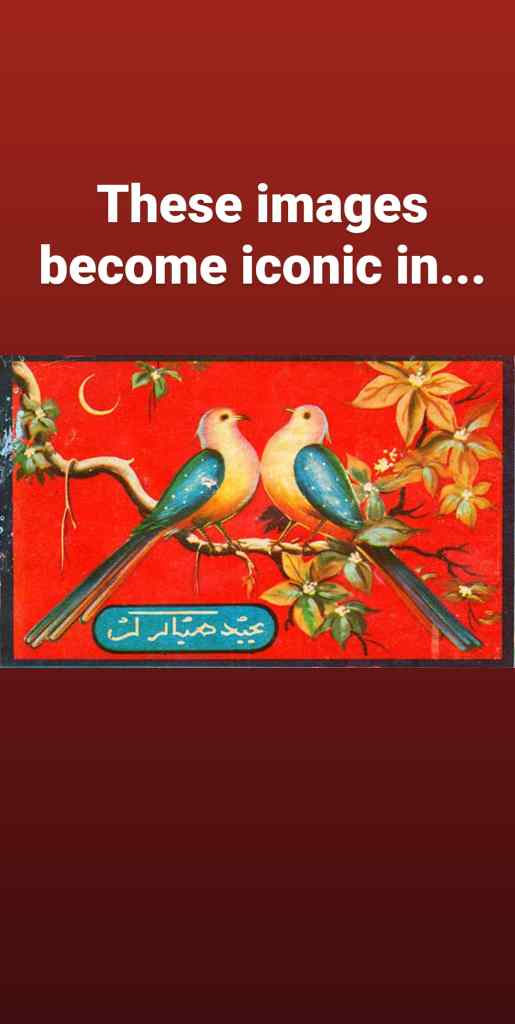These cards feature imagery that have become iconic Pakistani culture. We see these repeated over decades in tin plates on Pakistani trucks, boxes for bangles and on sherbert bottles.