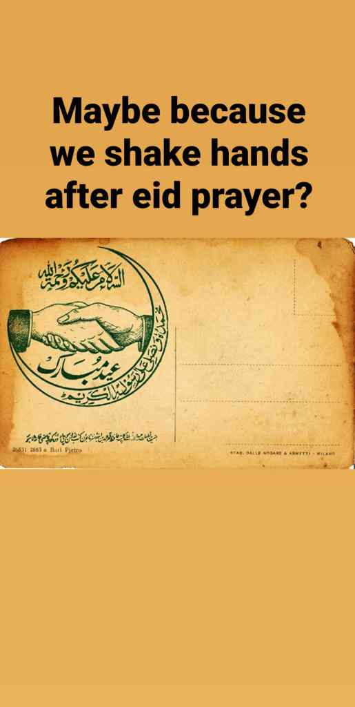One of the earliest examples of Eid cards as we know them to be today – mass produced and distributed through the postal system – can be traced to a time when Eid ul-fitr coincided with Christmas in British occupied India. This is dated to the early 20th century and eight decades after the introduction of the official British administered postal system. Before then? Migration was not a common trend to warrant letter writing between towns and cities, although handmade greeting cards were commonly exchanged in return for favours or rewards (we still call these Eidi). These were personally delivered to the recipient, to personally accept the reward since Eid is communally celebrated holiday.
