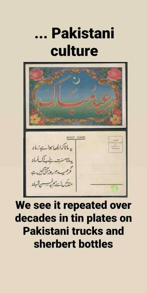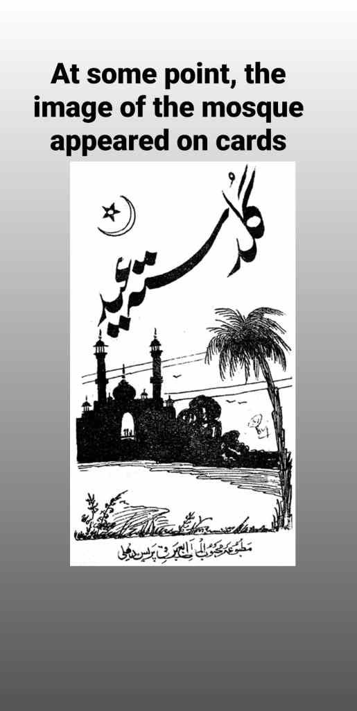 Images of the coloniser continue to feature on these cards, the only distinguishing feature being the greeting added by the publisher. Eventually, Urdu poetry started to make an appearance, moving to symbolism that was formed more democratically, that is a for the people by the people mode of production.