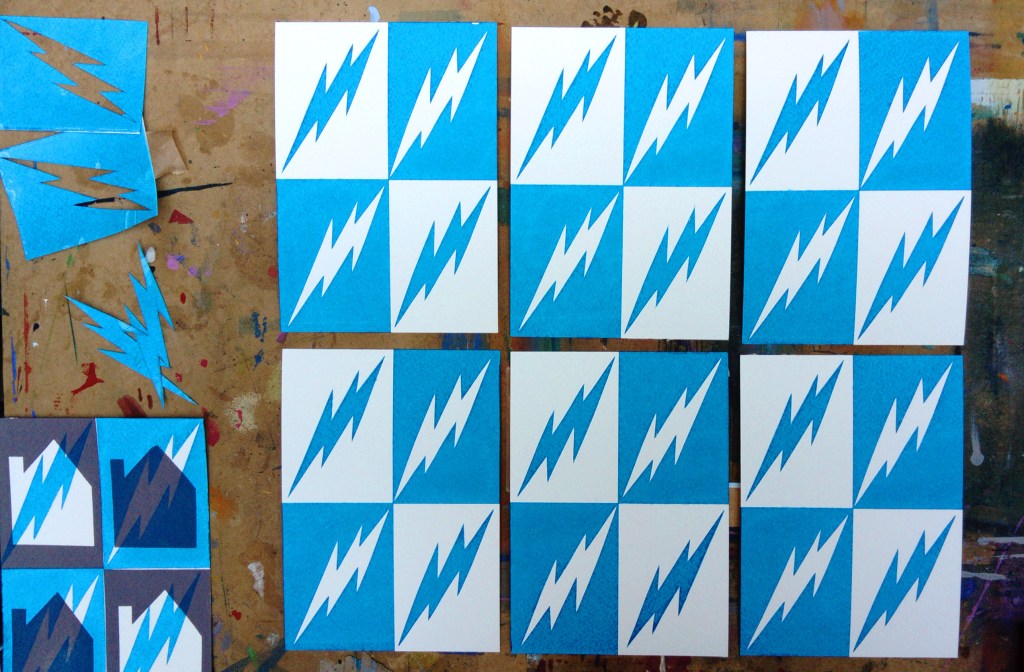 I mainly work in screen print, largely using cut paper stencil or collagraph largely using cut cardboard, I’ve obviously got a cut paper thing going. I also prefer cutting just with scissors if possible, I like the automatic limitation that this adds to my work.