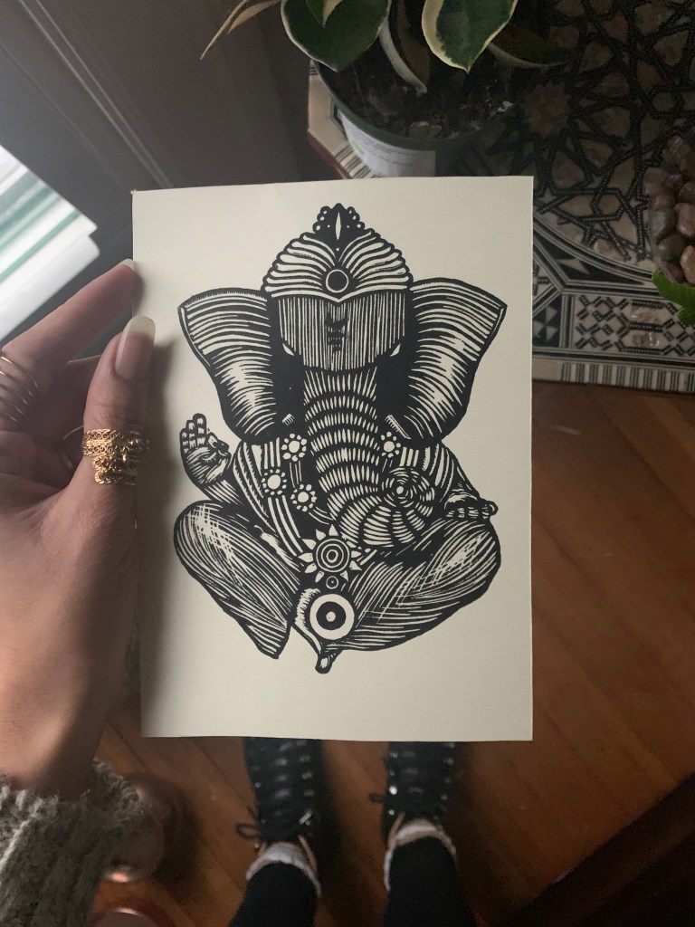 My name is Priya, the maker behind priyaprints. I am based in Seattle WA, USA, which I very proudly call home. I work from my makeshift home studio, where prints hang to dry practically everywhere, and the Ikea fold-out table is a versatile companion. I hand burnish each of my editions with household objects – wooden spoons, chapati fluffers, hammers. I have recently challenged myself to work larger, which has required a bit more patience for hand printing.
